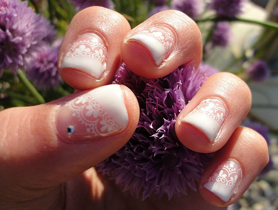 Следующие фотографии маникюра с кружевами из сайта Bibulle Nail Art.