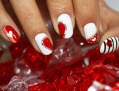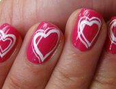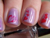 Посмотрите видео, как сделать праздничный маникюр с сердечками с помощью наклеек: