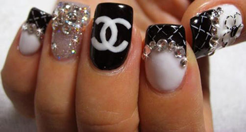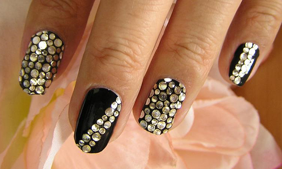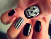 Для достижения красивого контраста можно покрыть ногти черным лаком и украсить стразами.