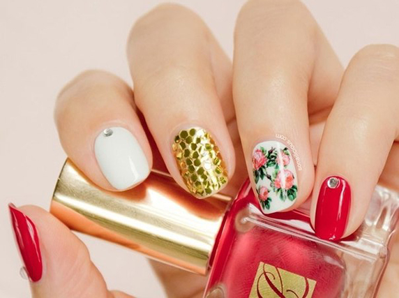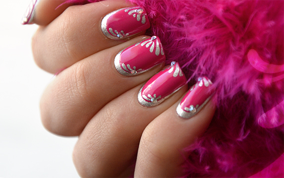 - Покрыть ногти лаком выбранного цвета. Причем, необязательно, что это однотонное покрытие. Вы можете украсить стразами любой нарисованный узор, французский маникюр и т.д.