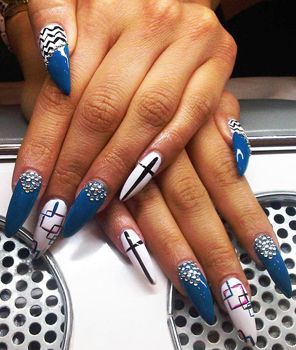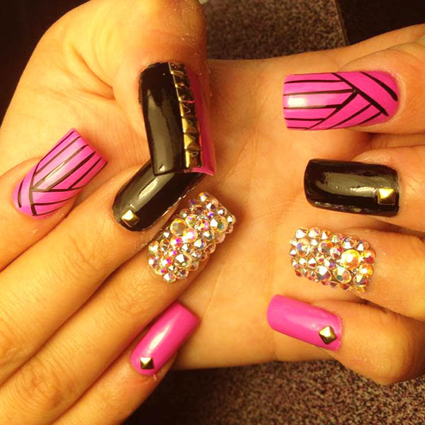 Очень часто при наращивании применяют дизайн с геометрическими узорами — треугольники, линии, квадратики и т.д.. С их помощью можно создавать самые красивые и оригинальные узоры.