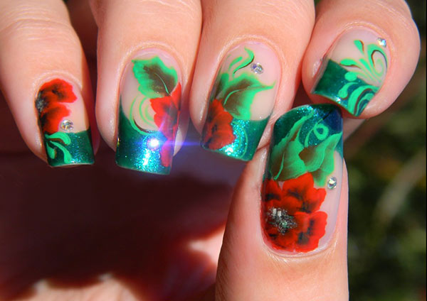 Она может быть классической, когда роспись выполняется акриловыми красками, или с элементами френча. Здесь всё также зависит от фантазии мастера и клиента.