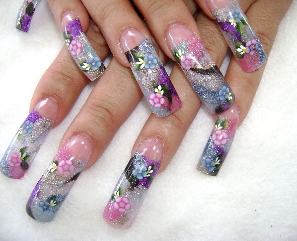 Данный способ дизайна- это «рисунок» (объёмный или плоский), который спрятан под прозрачным слоем акрила или геля. В качестве «рисунка» используют цветной песок, сухо цветы, стразы и другие элементы.