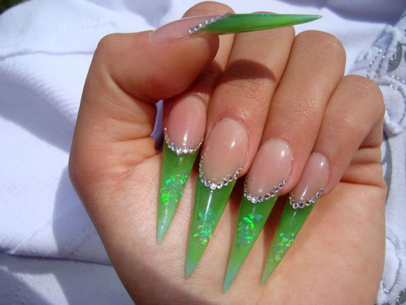 На ногтях можно изображать целые картины, не говоря уже о простеньких узорах и орнаментах. В этом случае в ход идут любые материалы для украшения. Наряду со всевозможными трафаретами и блестками особо популярно сегодня использование страз в ногтевом дизайне.