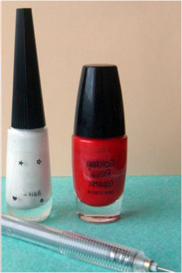 - Лаки нескольких оттенков, можно контрастных — белый и черный, красный и белый и т.д. Главное условие — лаки должны быть свежие. Не допускается излишняя густота.