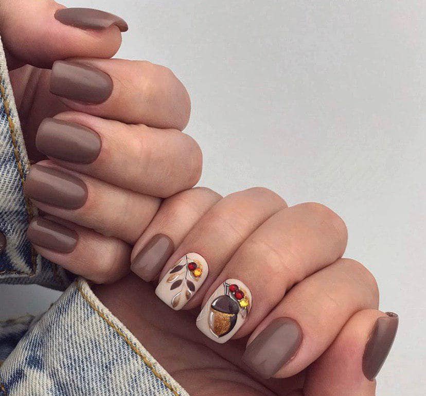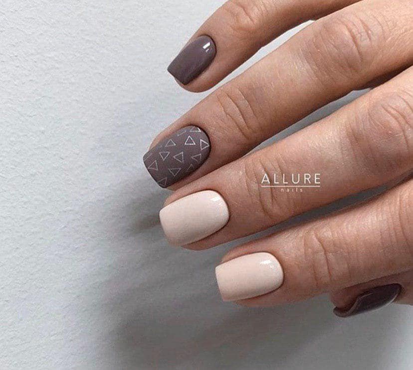 Многие девушки боятся, что на короткие ногти нельзя сделать красивый маникюр. Это не так. Для тех, кто носит коротышки, шоколадный подойдет как раз. Комбинировать его лучше в этом случае со светло-бежевыми оттенками.