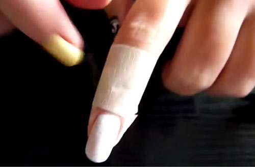 7. Соберите ватной палочкой пленку вокруг ногтя и осторожно выньте палец из воды.