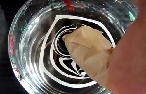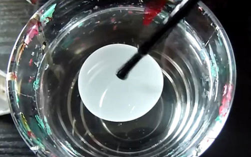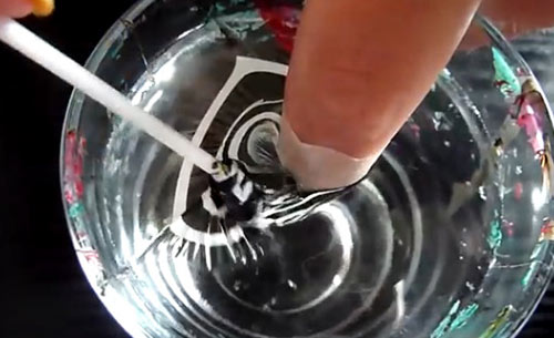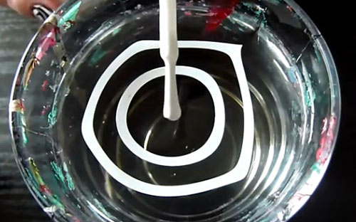 - При создании рисунка обязательно очищайте зубочистку перед погружением ее в воду. Делайте разводы только кончиком зубочистки, не опуская ее больше, чем на 7 мм.