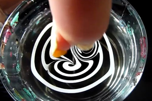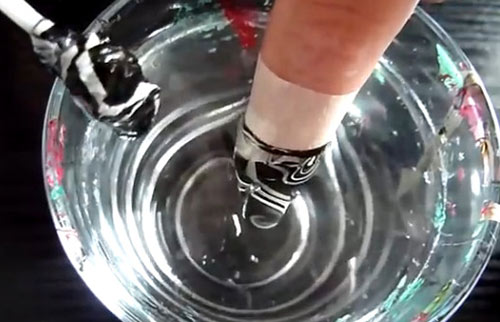 6. Опустить на рисунок подготовленный ноготь и погрузить палец в воду.